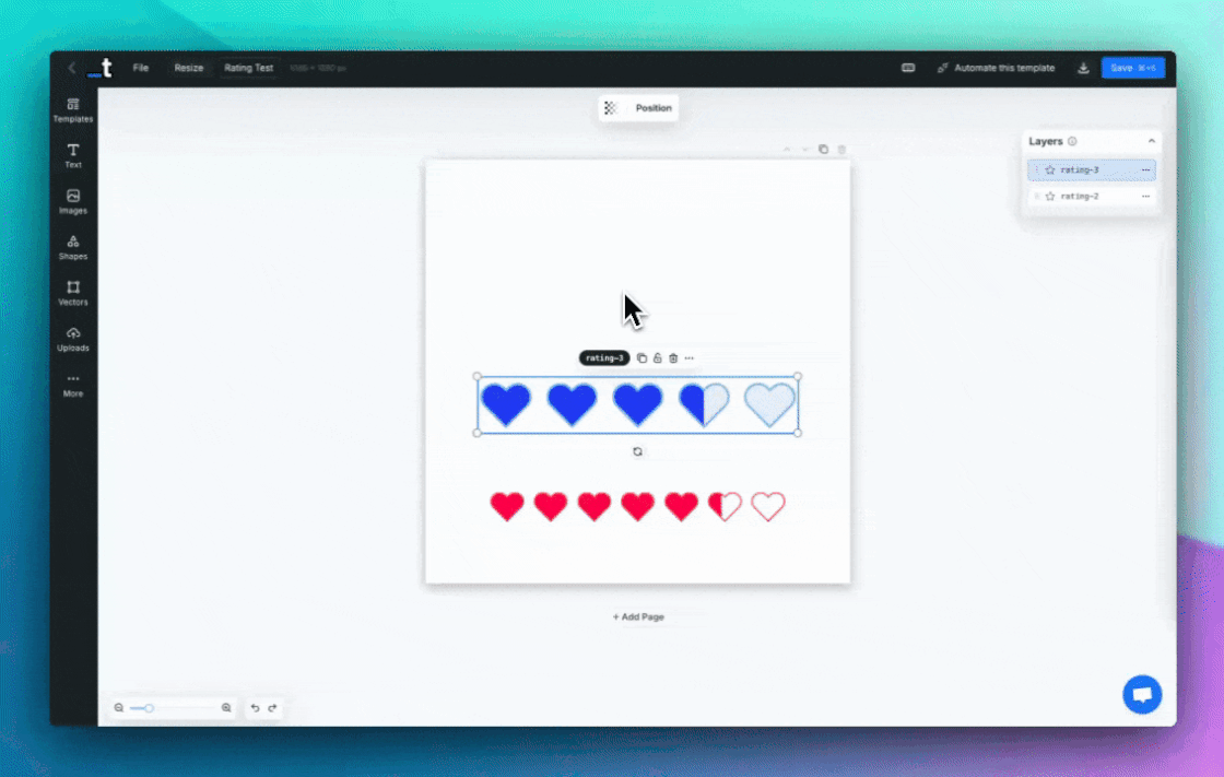 API Integration - You can control how many stars are filled for the rating through the API - perfect for automated review cards, testimonials, and feedback templates. Check the the param in the docs here.
